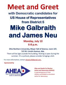 The meeting will include a meet and greet with Democratic candidates for US House of Representatives from District 5, Mike Galbraith and James Neu. The event is also a potluck, so please feel free to bring a dish to share.